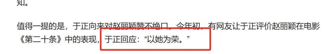 要知说念,在此之前,于正一直齐对赵丽颖唱和有加,一拿起赵丽颖他就溢好意思之词就不竭于口。